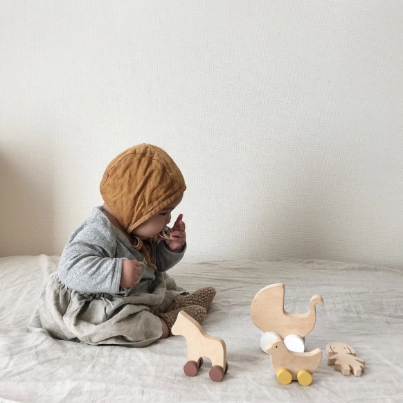 動物に興味を持つようになった赤ちゃんにおすすめなのが木でできた動物のおもちゃです。優しい色合いと木ならではの温かみがあり、赤ちゃんだけでなくママのお気に入りにもなるはず。落ち着いた色味なのでどんなインテリアにも馴染み、いろいろな動物を集めたくなるでしょう♡