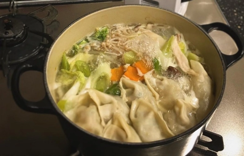 冬になると食べたい鍋。コストコ冷凍生餃子は、鍋に入れてもおいしくいただけます。白菜や長ネギ、きのこがよく煮えたら、凍ったままの餃子を投入してさらに煮込むだけ!皮が崩れてしまわないように、煮込み過ぎに注意してくださいね。水炊きやキムチ鍋との相性がいいようですよ。