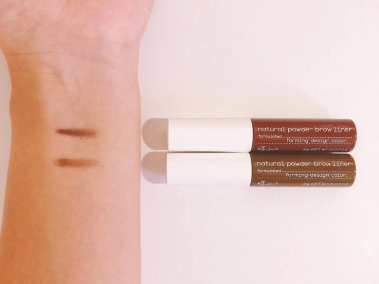 オリーブブラウン(写真下)は、ミントグリーンのパッケージに入って販売されています。イエロー寄りの髪色に合うように作られたカラーで、パウダーの色味がほんのりグリーンがかっています。ピンクブラウン(写真上)のチップオンアイブローと比較して、カラートーンが暗めになっているところが特徴。オリーブブラウンを使えば、落ち着いた印象の眉メイクに!