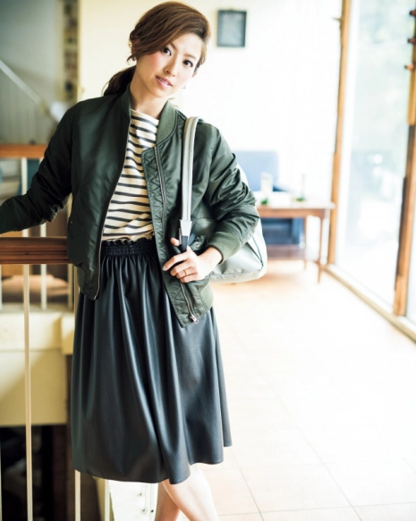 ・ガーリーなロングスカートをMA-1でカジュアルダウン!