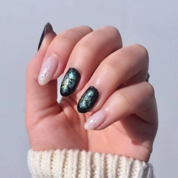 ・黒×ラメでラブラドライトネイル