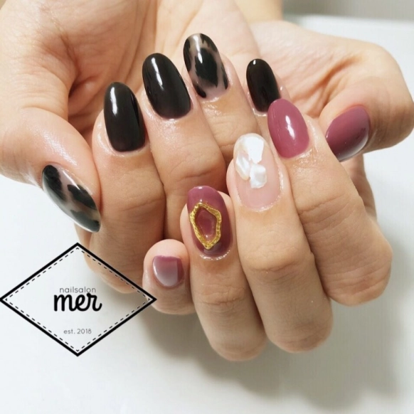 強すぎる黒はやっぱり苦手…という人は、写真のような透け感のあるブラックはいかが?@miki.moriiさんは淡いパステルピンクと黒のシースルーネイルを組み合わせています。黒ネイルの中にはお花が描かれているため、かわいらしいピンクとの相性も抜群!大人かわいいデザインを好む人におすすめです♡
