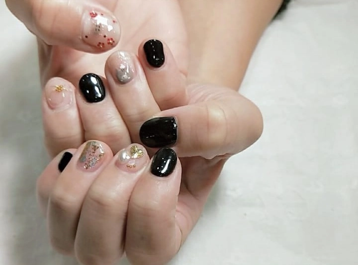 @xxsmile.xxさんは、ポイントに黒を入れたデザインネイルをされています。他の指は、クリアカラーとパーツを組み合わせてかわいらしい印象ですが、ポイントの黒が全体を引き締めてくれていますよね♡黒ネイル初心者にもおすすめのネイルデザインです!クリア×黒は意外と相性が良いため、フレンチネイルにしてみてもおすすめですよ♡