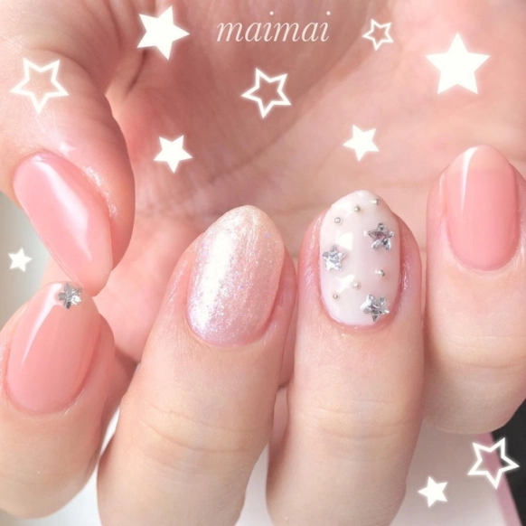 星柄ってカジュアルになりすぎるって思っていませんか。@ maimai_shufunailさんが教えてくれたスターネイルは、とっても大人っぽいデザイン。『Seria(セリア)』のネイルパーツシールを使って、きらきら輝くスターネイルの完成です。小ぶりの星を選ぶことが、大人っぽい上品なスターネイルのポイントかも。凹凸のあるパーツをはがれにくくするには、トップコートのハケを立てて塗ることがコツだそうですよ。