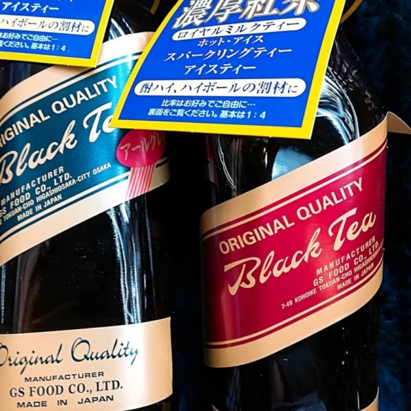 カルディで人気のブラックティーは、希釈タイプの濃縮紅茶(リキッドティー)。正式名称はGSブラックティーと言い、もともとは喫茶店やホテル向けに開発された業務用アイテムでした。1959年の販売以来、約60年間親しまれてきたロングセラー商品なんですよ。その魅力は、希釈するだけで本格的な紅茶が作れることと、組み合わせによって多彩なアレンジが楽しめること。ユニークなアレンジレシピがSNSで拡散したことをきっかけに、ファンが激増し話題になりました。ガラス瓶の容量は500mlで値段は540円(税込)。基本の使い方では「5倍希釈」なので、150ccのカップなら約16杯分!なんと1杯約34円で、本格的な紅茶を手軽に楽しめるんです。これなら、コスパ面も納得!一度買ったら、買い続けてしまうリピーターさんの気持ちもわかりますね。
