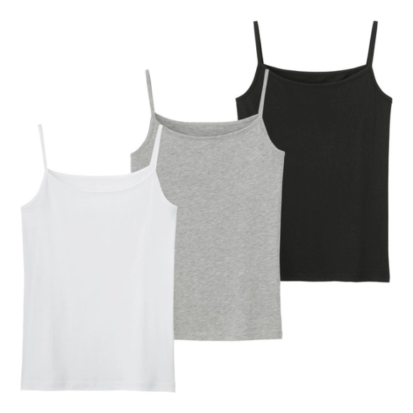 インナーとして、生活にキャミソールは欠かせないという方には5枚組や3枚組のパックがおすすめ。画像は「キャミソール3P」。5枚組にするのか3枚組にするのか、洗濯や着替えの頻度に合わせて選びたいですね。ベーシックカラーの組み合わせでどなたにもおすすめできるパックです。