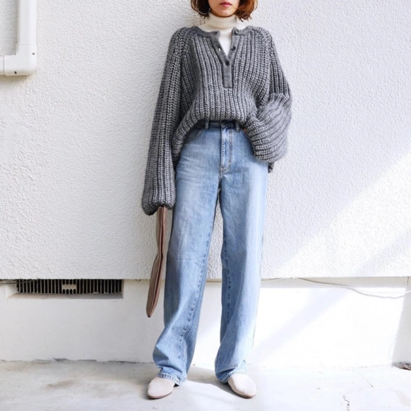 @mikiaobaさんは、グレーのニットに白のタートルネックを合わせた、ニットonニットでスタイリングされています。カジュアル感の強いデニムも、ニットのざっくり感が女性らしさを演出。ボトムインすることで、メリハリができ着ぶくれ感も回避することができます。技ありのニットonニットなら、いつものデニムコーデもグッとおしゃれ度をアップできそうですね♡
