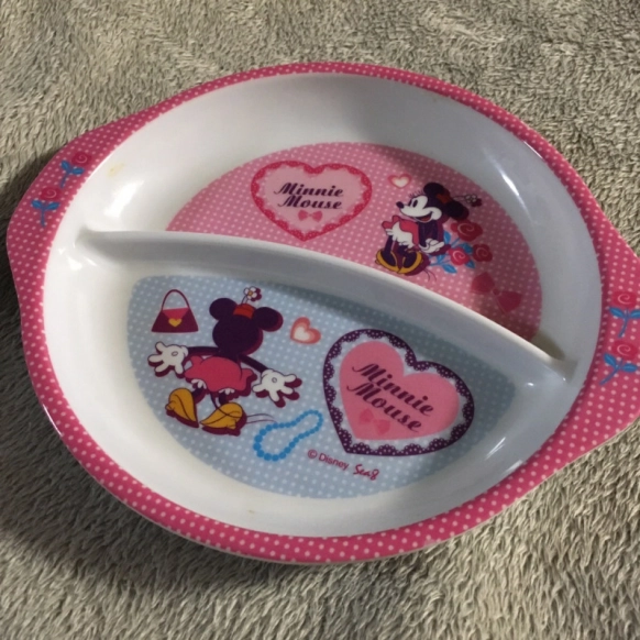 こちらはミニーマウスデザインの仕切りつきプレート。子どもが食事中に食器をひっくり返す心配があるママにおすすめのプラスチック製です。ミニーマウス以外にも、ミッキーマウスやスティッチ、カーズなどの食器も!