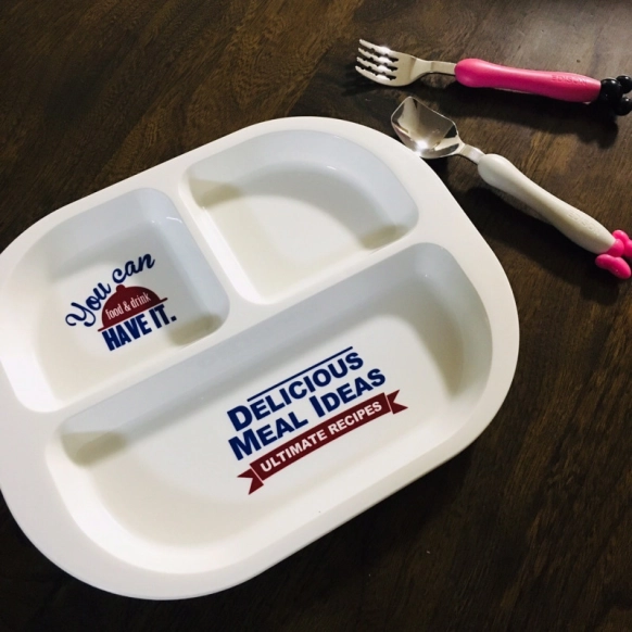 こちらのランチプレートは、食洗機OKの仕様でお手入れ簡単!おしゃれなロゴデザインも人気の秘密です。軽くて扱いやすく、子ども用にも使えますよ。