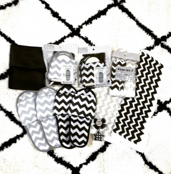 セリアにある「PORTABLE SLIPPERS(ポータブルスリッパ)CHEVRON PATTERN(シェブロンパターン)」も、他セリアスリッパと同じようにおしゃれ度の高いデザイン。シンプルな配色のシェブロン柄なので、大人っぽく使えます!携帯用なので、薄くコンパクトに折りたためてしまうのもうれしいですよね。