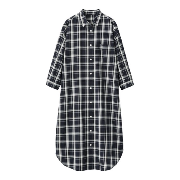 「チェックシャツワンピース(7分袖)JN」は、ほどよい丈の長さで1枚でも大人っぽく着こなせるアイテムです。シルエットがシンプルなので、着回し力抜群。レギンスと合わせても、素足を出してもコーデがきまりますよ。羽織りとして使ってもよいですよね。値段は、2,990円(税抜)です。ネイビーとオフホワイトがあります。
