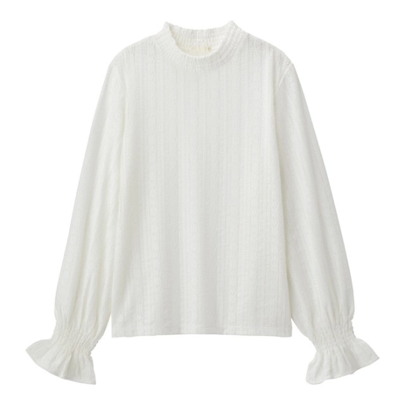 GUのフリルネックアイテムの中で特に人気が高いのは「レースフリルネックT(長袖)」です。その実力について詳しく見ていきましょう。