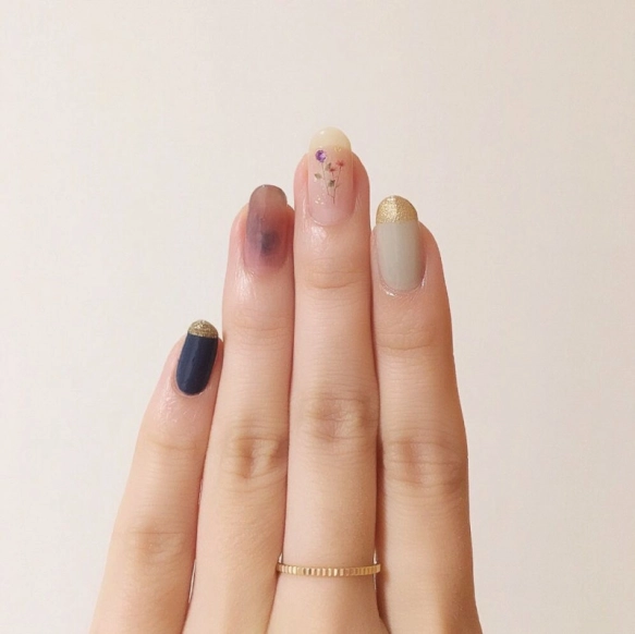 くすみカラーで作るワントーンネイルは、1本だけゴールドにすることでぐっと華やかになりますよ。@sum723merさんみたいに、グレー系のネイルカラーにもゴールドはベストマッチ☆ゴールドのポリッシュは『3COINS(スリーコインズ)』なんだとか。プチプラネイルで、さっそくワントーン×ゴールドネイルを楽しんでみてくださいね。