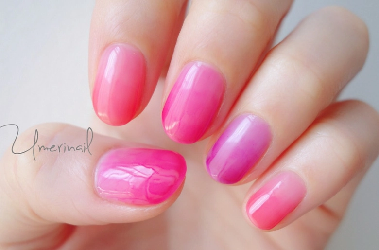 はじめてグラデーションに挑戦するときは、赤などのべったりと色が出るポリッシュよりも、薄づきのポリッシュがおすすめですよ。