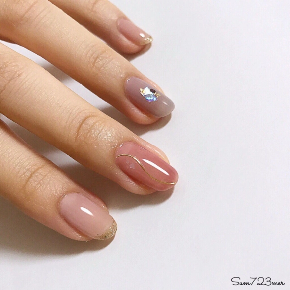 ・くすみカラー×シンプルキラキラデザイン