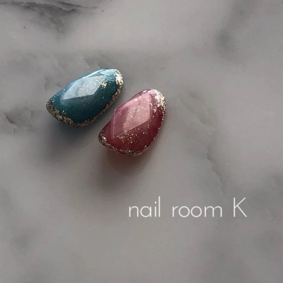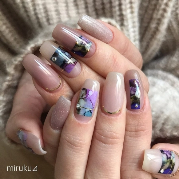 ・キラキラしたマーブルネイル