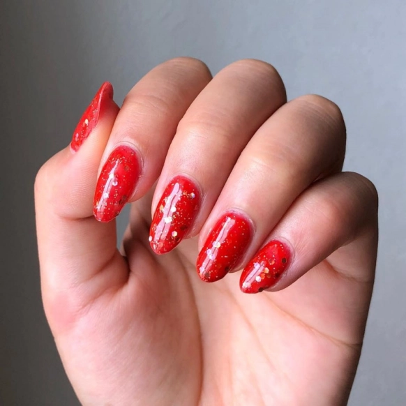 ファッションが強めだからネイルも強めにいきたい。今日は女っぽさを出したい!そんなときは、赤×キラキラの強めアピールネイルはいかが?”キラキラ”じゃなく”ギラギラ”感が出るようにホロパーツをつかうのがポイント!気持ちにも自信がでそうなキラキラネイルは女っぷりもアップしそうですね。キラキラネイルを写真に撮るときのおすすめは、よりキラキラ感がでるように写真アプリを使うのがおすすめ☆ネイルのホロやラメに合わせてキラキラ演出が足されて、とっても映える写真になりますよ。インスタにアップするとより「いいね!」が増えること間違いなしかも!?