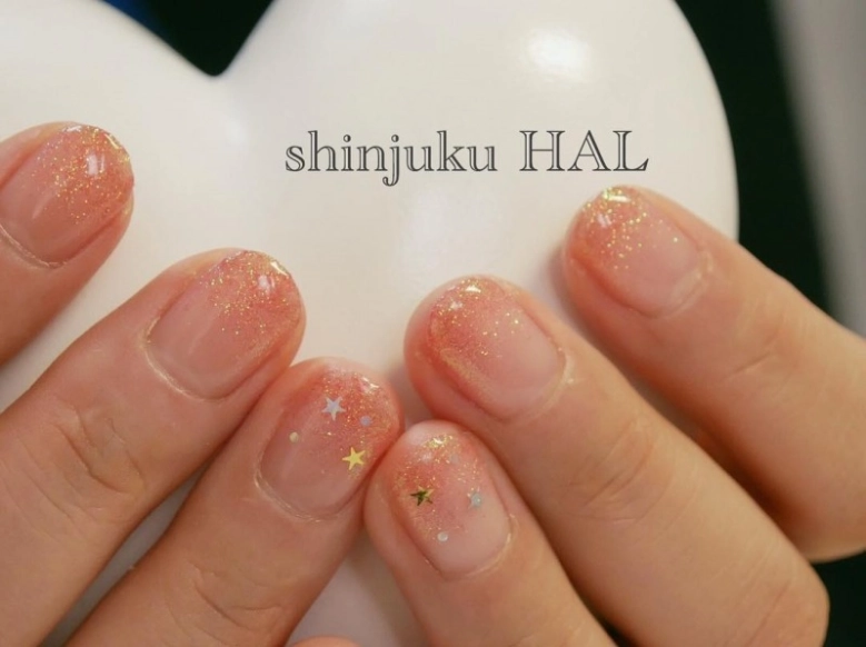 ラメグラデーションは初心者の人もはじめやすいデザインです。爪全体にクリアマニキュアを塗り乾燥させ、爪の先だけにラメを塗ります。仕上げにトップコートを塗ってしっかり乾燥させたらでき上がり。アクセントに追加でストーンやデコシールを貼るとさらに素敵な仕上がりに。手軽におしゃれなネイルができますよ。