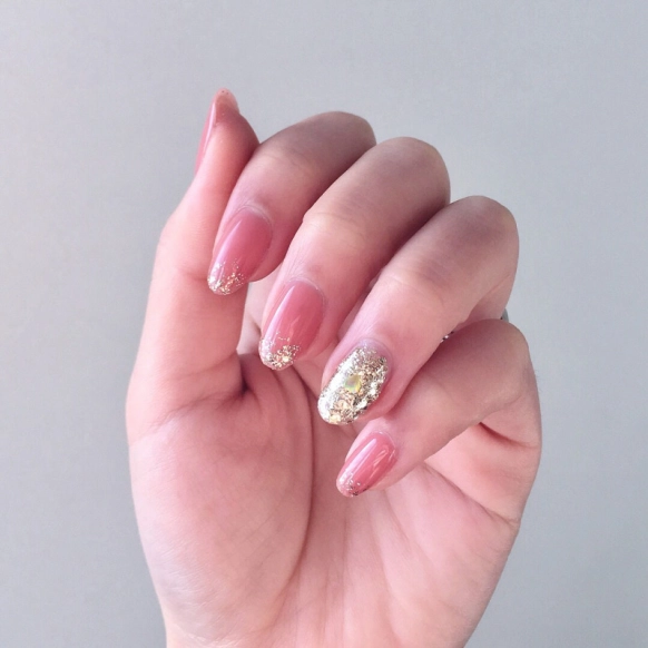 ・ピンク×ゴールドのキラキラネイル