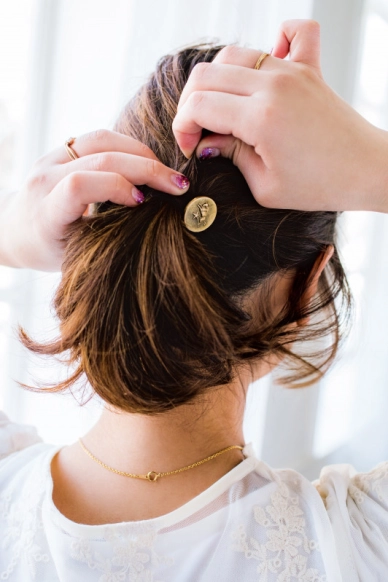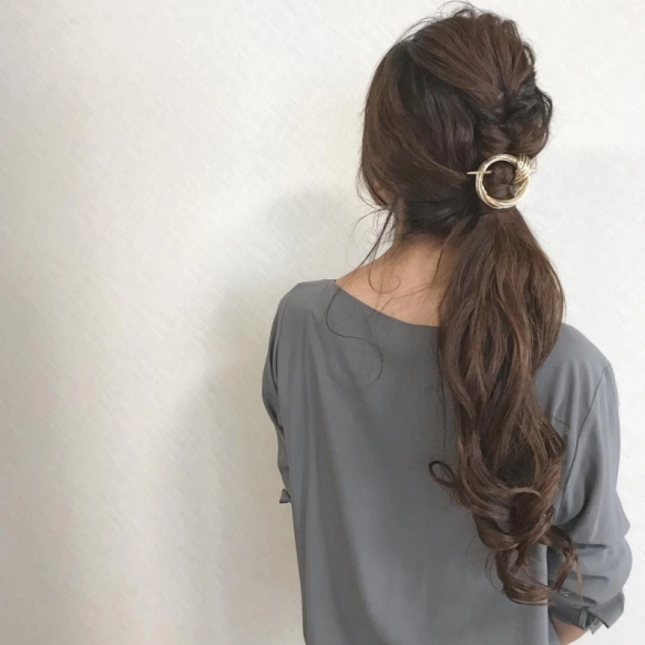 髪の毛にスッと差し込むだけのクレセントコーム。洗練された印象のデザインが豊富にあります。ふんわりほぐした髪の毛につけるだけで、いつものポニーテールがグンと大人っぽくなりますね。クレセントコームをポニーテールで使用するときは、ヘアゴムの真上ではなくちょっとズラして使うと、よりおしゃれに見えます。