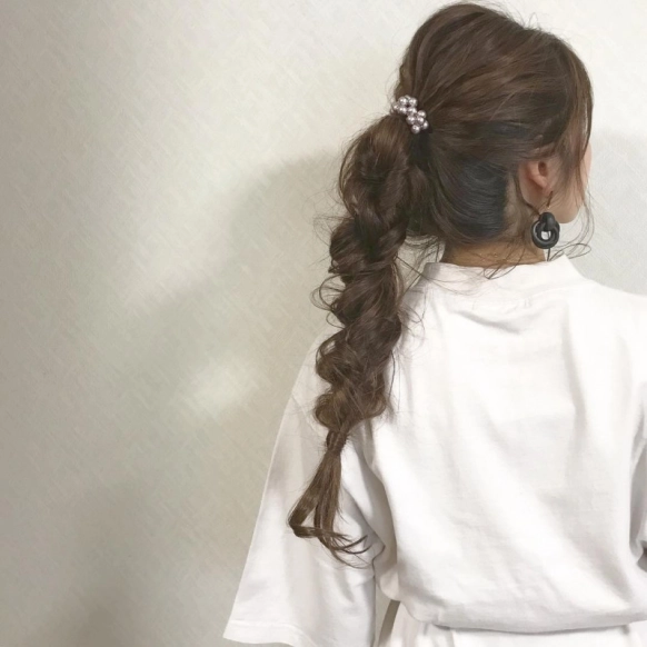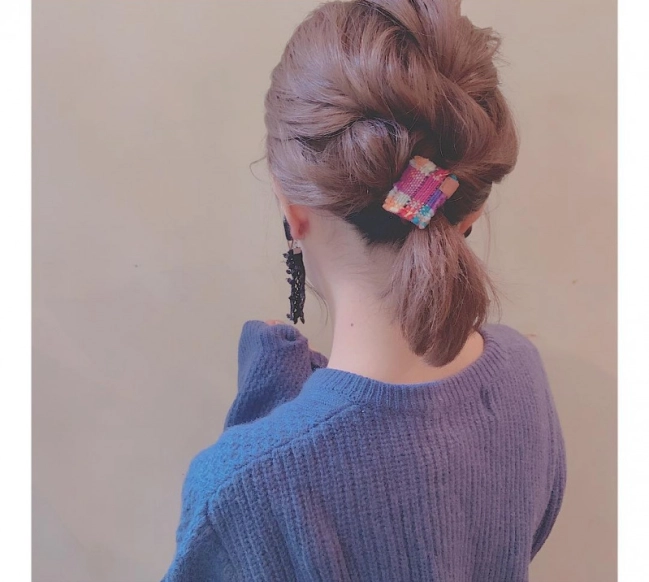 髪の毛を留めるヘアゴムを大きめチャームがついたものに変更すれば、こんなに女性らしくおしゃれに!あとからヘアアクセをプラスする必要がないので、ぶきっちょさんにもおすすめです。