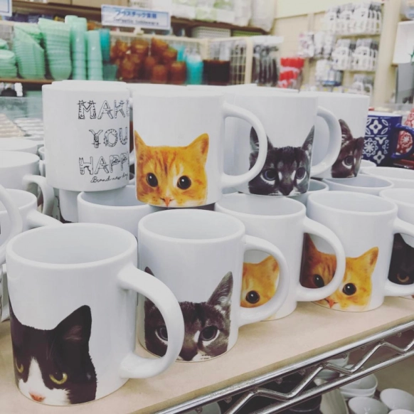 猫好きにはたまらないマグカップ。愛らしい表情の猫がプリントされているので、使うときはもちろん食器棚に置いていても癒されそうです。