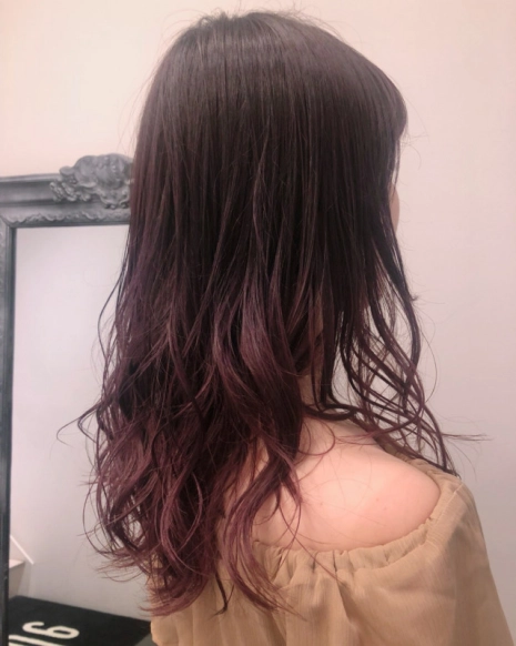 ロングの女性らしい印象を強調するのにぴったりなのが、ピンクと紫の中間色を使ったグラデーション。ピンクや紫を単発で使用すると、どうしても奇抜な印象になってしまいますが、2色を混ぜ合わせてグラデーションを作ることでやさしい印象におさえることができます。あたたかみのある色なので、女性のやさしい雰囲気を漂わせるのにもぴったりです。