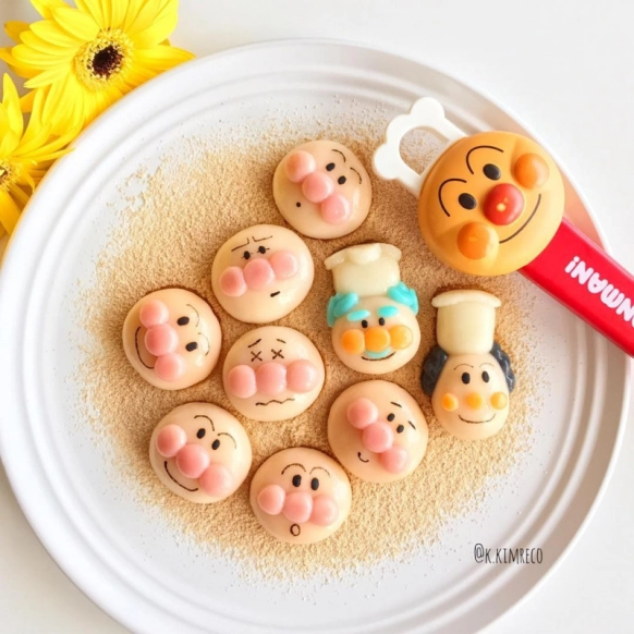 子どもに大人気のアンパンマンのお顔のキャラ白玉は、お豆腐もいっしょに入れて作られているそうです!お顔の色はきなこでつけているのでおいしさも◎それぞれ違った表情のアンパンマンたちがとってもかわいいですね♡