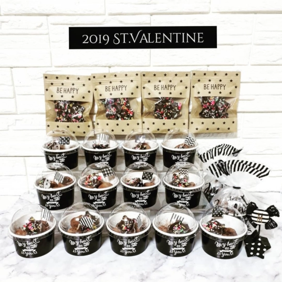 セリアのドーム型ふたつきカップなら、チョコレートのデコレーションやマフィンなどを崩さずに贈ることができますよ。ブラックの見た目もシックで高見えしそう!窓つきのジップ袋に入れるのもおすすめです。