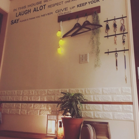 写真の壁に貼られているのは100均のクッションレンガシートです。白い壁の一部分だけに貼ることでよりおしゃれな空間になっています。初めてシートを貼る人でも、部分的に使えば失敗も少ないのでおすすめの使い方です。