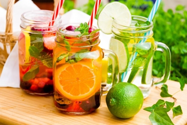 「デトックスウォーター」とは、フルーツやハーブ、野菜を入れてミネラルウォーターや炭酸水を注ぎ、冷蔵庫で数時間浸けておくだけでできる、簡単で健康に良い飲み物です。前日にメイソンジャーに浸しておけば、ピクニックに持って行けますよ。