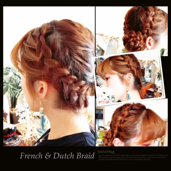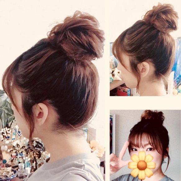 サイドは裏編み込み、中央は表編み込みして、3本の編み込みをお団子にまとめたスタイル。長い髪を活かし、ボリュームある髪型です。髪全体を編み込みして1つにまとめるスタイルもあります。小さい髪飾りをたくさん飾ると豪華に見えますね。<お団子アップヘア>お団子ヘアは簡単なやり方でアップヘアが作れます。ミディアムの長さでもお団子の位置を工夫すれば大丈夫。