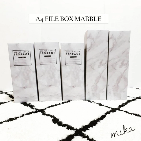 無地のシンプルなファイルボックスはデザインの邪魔をせず使い勝手が良いですが、おしゃれとは少し違いますよね。そこで使ってほしいのが「A4 ファイルBOX マーブル」。紙製ですが、大理石柄が少し高級感漂いますよ♡