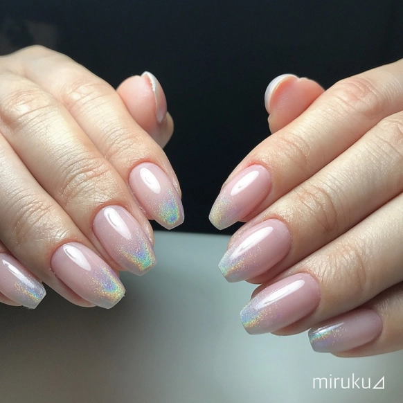 派手になりがちなユニコーンネイルのデザインは、グラデーションで取り入れることで上品に楽しむことができます。ベージュカラーや乳白色ネイルなどシンプルなカラーと合わせれば、派手すぎないトレンドカラーネイルデザインを目指せますよ。