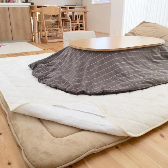 ナチュラルテイストでシンプルなリビングに統一したい人におすすめなのが、『無印良品(むじるしりょうひん)』のマット。ベージュやブラウンカラーのマットが多く、どの家庭のリビングにもマッチしやすい商品がそろっています。無印のこたつ布団といっしょに、カーペット対応のマットを購入する人も多いそうですよ。