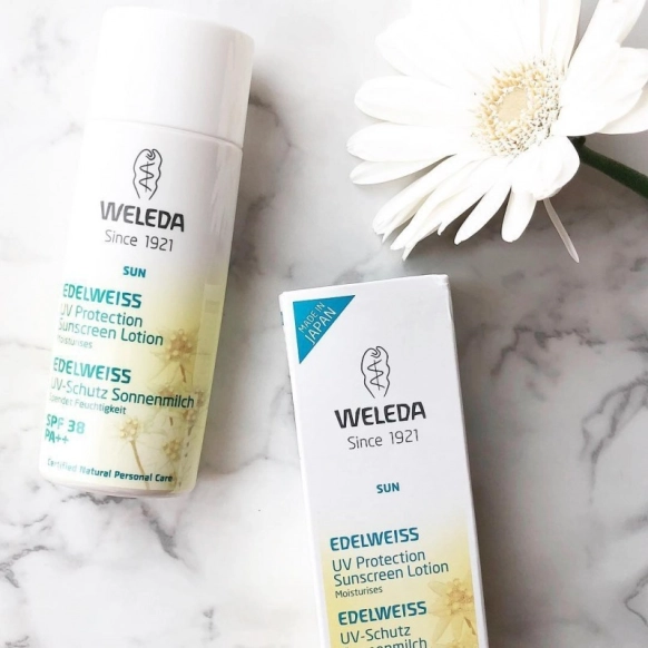 『WELEDA(ヴェレダ)』の「エーデルワイスUVプロテクト」2,530円(税込)は、生後1カ月の赤ちゃんから使えるオーガニックのUVミルク。石鹸で簡単にオフできるのはもちろん、敏感肌の人が気になる乾燥からも肌を守ってくれます。その秘密は植物エキス。天然由来成分を100%使い、日本人の肌に合わせて開発された商品です。