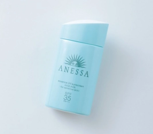 『ANESSA(アネッサ)』の日焼け止めは、肌を絶対焼きたくない人に向けた日焼け止めから、デリケート肌の人に向けたものまで、幅広いラインナップで展開されています。テクスチャーもいろいろあり、ジェルタイプやスプレータイプ、ミルクタイプなど種類豊富!画像の日焼け止めは「エッセンスUVマイルドミルク」3,300円(税込)です。赤ちゃんや子どもにも使える低刺激設計が特徴。無添加、無香料、無着色と肌には優しいですが、汗や水にふれるとUVブロック膜が強くなる“アクアブースター技術”搭載で紫外線をしっかり防止!ヒアルロン酸配合で敏感な肌をいたわり、未来の肌をも守る日焼け止めです。