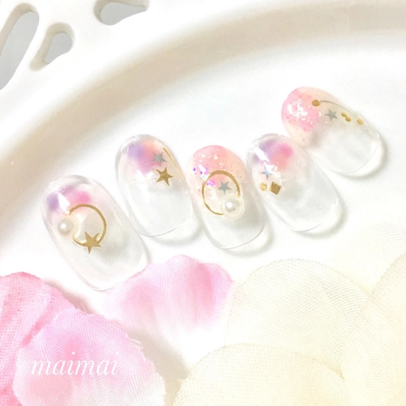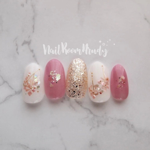 できてしまった気泡をごまかすには、ラメやアートシールが大活躍!ラメを上から重ねれば、気泡もなかったことに。画像のようにシェルを使うのもおすすめです。ラメやシェルの配置次第で、気泡をごまかしたどころかよりおしゃれなデザインに仕上がる可能性もありますよ♡また、ネイルパーツを置くときに浮きがあるままトップコートを塗ってしまうとパーツのまわりに気泡ができてしまうで、しっかりとネイルパーツを貼りつけてからトップコートを塗りましょう。