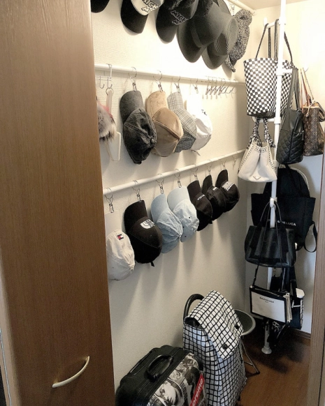 突っ張り棒にフックをぶら下げたり、ネットやかごを取りつけたりするだけで、簡単に収納に早変わり。材料もインテリア用品店やホームセンター、100均などで売られている安いアイテムだけで作れるので、お金をかけずに収納を増やしたいときに便利です。しっかり固定すれば意外と丈夫なのも魅力。