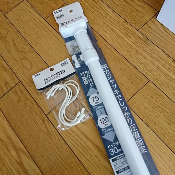 こちらもニトリの強力突っ張り棒。75~120cmの幅で使える短めタイプの商品です。強力突っ張り棒を購入する際には、設置したい場所の長さを事前に測っておくのがおすすめ。さまざまな長さの強力突っ張り棒があるので、きっとあなたの使いたい場所に合ったアイテムが見つかりますよ!