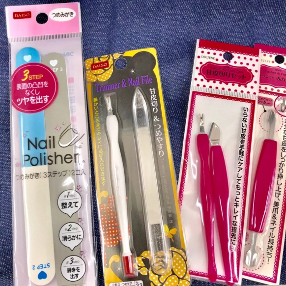 爪の形を整えたら、次のステップは甘皮処理。こちらもダイソーに甘皮処理グッズがいくつかありました。甘皮切り単体のもの、爪ヤスリもしくはプッシャーと2個セットになっているものです。甘皮をしっかり取り除くと、ネイルの仕上がりが美しく長持ちします。ぜひダイソーのグッズを使って、気軽に甘皮処理をしてみてくださいね。