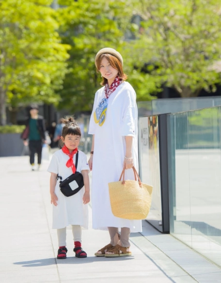・お名前&年齢ママ:正木 祥子さん(32歳)パパ:丈さん(32歳)お子さん:いおりくん(2歳7カ月)ママ・パパ・お子さんみんなが白×デニムで統一させた家族リンクコーデ。ウエスト部分にねじれデザインが施されたママのTシャツワンピースは、『Auntie Rosa Holiday(アンティローザホリデー)』で購入されたもの。フリンジがかわいらしいカゴバッグも夏らしく、爽やかなコーディネートに仕上げられています。