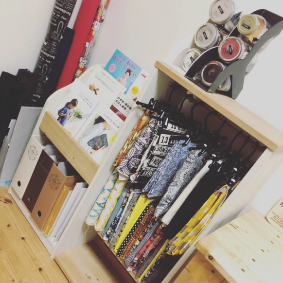 たくさんの布を収納している@rinrinmadeさん。大きめの布は、スラックスハンガーを使ってはさんで収納しているのだとか。この方法だと、布の柄がひと目で分かり取り出しやすさも抜群ですよね。ぜひマネしたい布収納テクです!