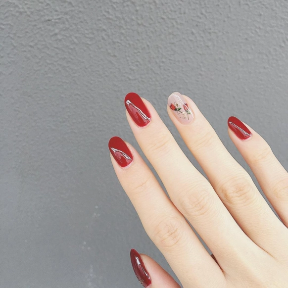 シンプルに”一輪のみ”はもちろん素敵ですが、ネイルパーツやさまざまなデザインと合わせても使いやすいのが一輪挿しネイルの魅力。他の指のデザインとカラーを合わせることで、さらにバランスが良く美しく仕上がりますよ。