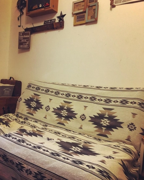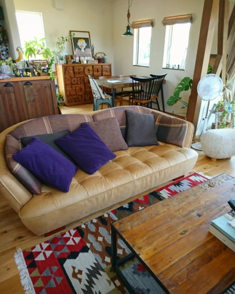 最も手軽にできるのが、ソファの座面にカバーや布をかける方法です。使用するのは、ラグやマルチカバー、布団カバーなど、座面を覆えるものであれば何でもOK。なかには、好みの布をソファサイズに合わせてDIYするなんて人も。専用カバーを購入するとお値段がかかってしまいますが、これならとってもリーズナブルに雰囲気をチェンジできます。また、汚れたときには洗濯しやすいのでお手入れの負担も減らせますね。