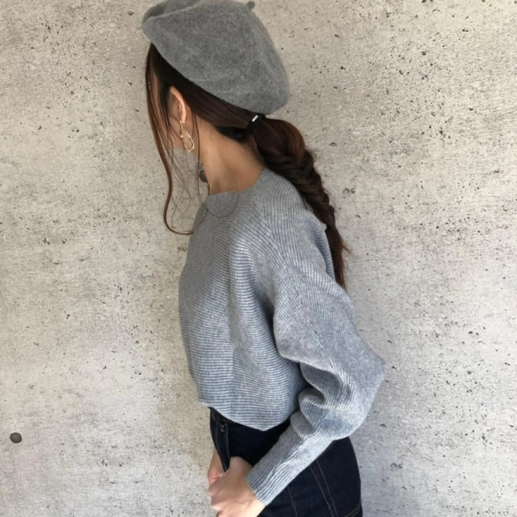 クラシカルな印象が強いベレー帽には、三つ編みやフィッシュボーンなどちょっぴりレトロな髪型がぴったり。ゆるく結ぶことで編み目を大きくしたり、結んだあとに少しずつ毛を引き出して崩してみたりすると、また違った雰囲気を楽しめます。お団子などにするとガーリーな印象となりがちですが、ひとつ結びの三つ編みやフィッシュボーンなら落ち着いた大人な感じを演出できますね。