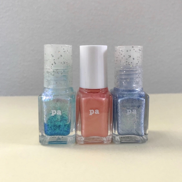 paのマニキュアはベーシックカラーから、マットラメカラー、セミマット、透け感カラーまでかなりの種類があります。おもしろいのはネイルサロンでしかできないような質感のマニキュアもあること。ジェルネイルでよく見かける、つぶつぶシュガーネイル、メタリックネイルまでプチプラマニュキュアで気軽にチャレンジできるなんてうれしいですね。そんなpaのおすすめカラーはこちら真ん中の「A05」。桜貝のようなカラーで女子力をあげたいときにぴったりです!品もあり男性うけが良いカラーです。