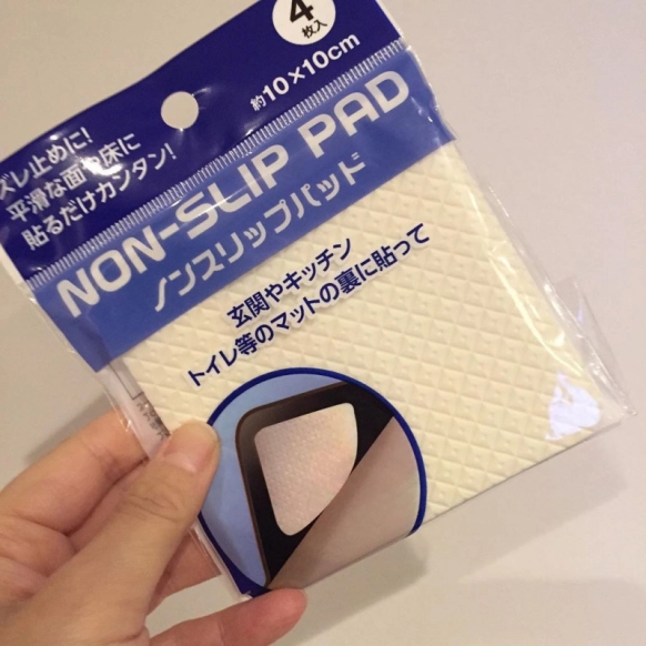 約10cm×約10cmのパッド4枚入りの「ノンスリップパッド」は、100均セリアでおすすめの滑り止め。