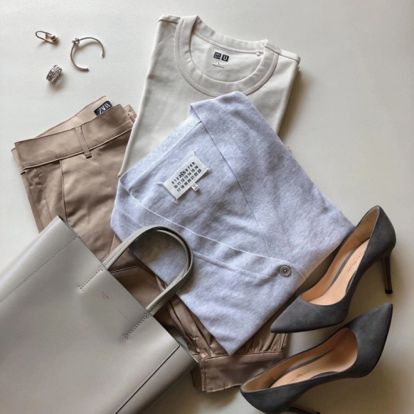 肩掛けカーディガンはラフな印象です。そのため、大きめのバッグとの組み合わせでは、なんだかチグハグ。合わせるバッグはコンパクトにするのがベストバランス!また、肩掛けカーディガン×斜め掛けバッグも避けておきたいところ。おしゃれ見せを狙うなら手持ちバッグがおすすめです。