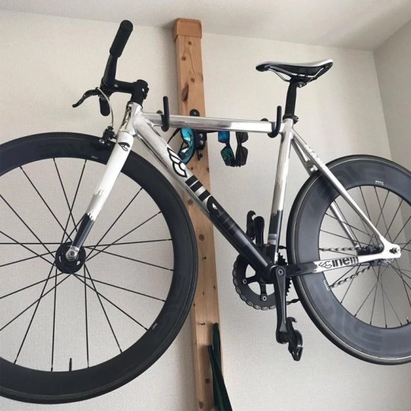 賃貸でDIYをするのに強い味方の「ディアウォール」。@sachico.yamさんはご主人の趣味である自転車を掛けるのに使っています。重たい自転車もこんなに簡単に掛けることができるということは、テレビを取りつけるのも問題なさそうですね☆